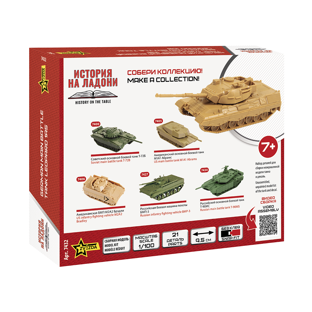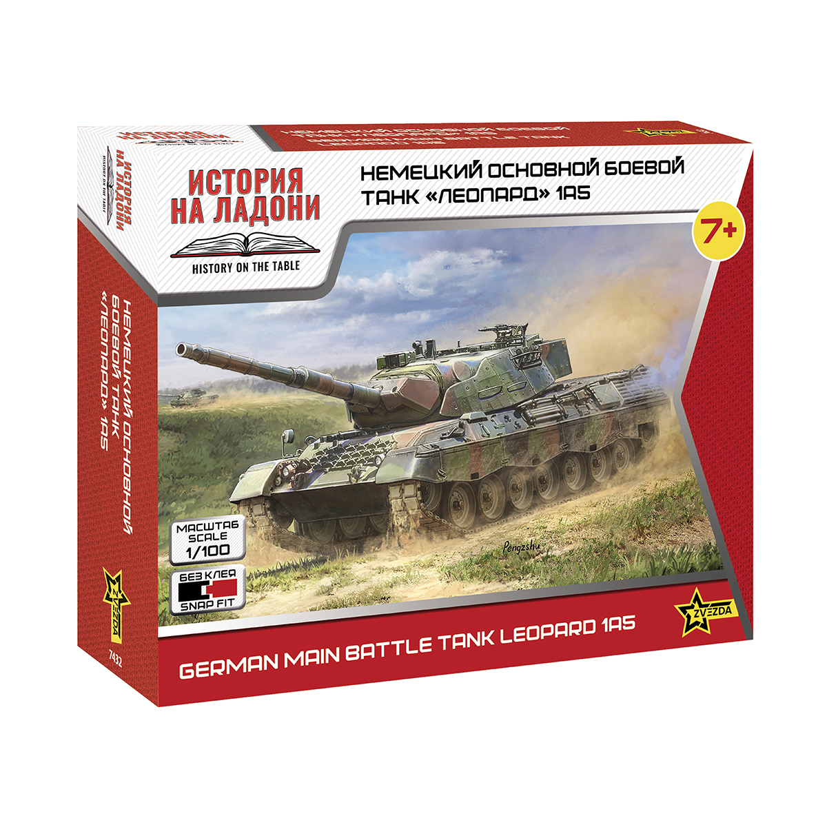 ZVEZDA 7432 Модель для сборки без клея Основной боевой немецкий танк Leopard  21 элемент. Фото 2.