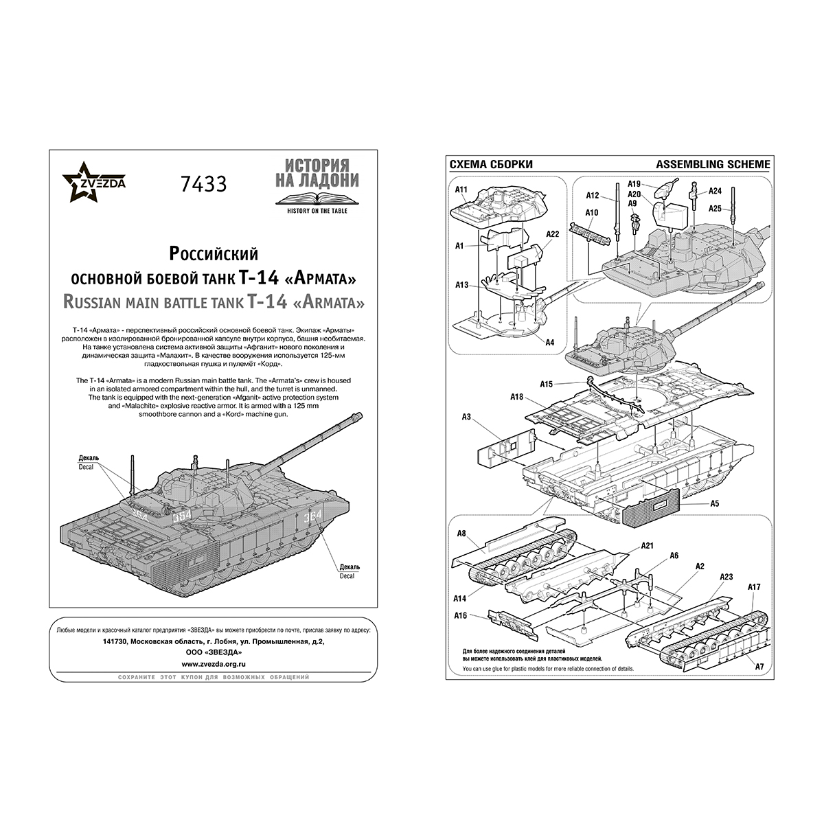 ZVEZDA 7433 Модель для сборки без клея Российский основной боевой танк Т-14 Армата 25 элемент. Фото 4.