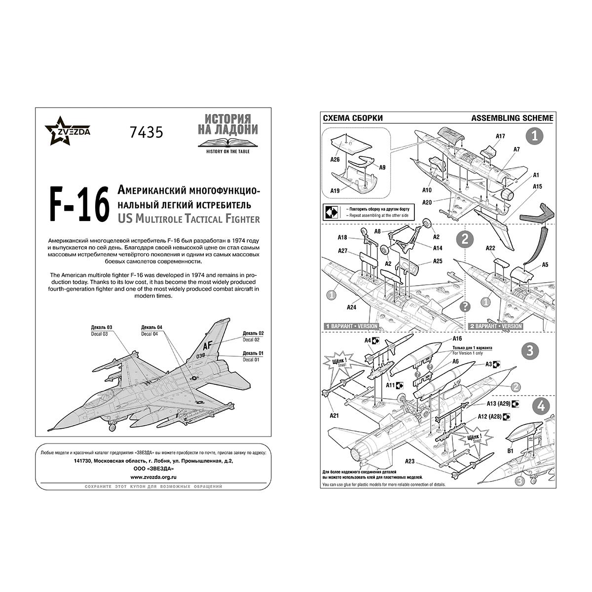 "ZVEZDA" 7435 Модель для сборки без клея Американский многофункциональный легкий истребитель F-16 34 элемент.