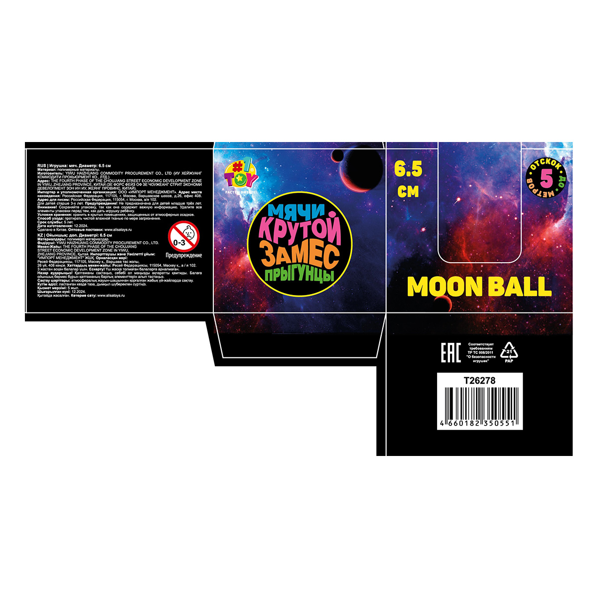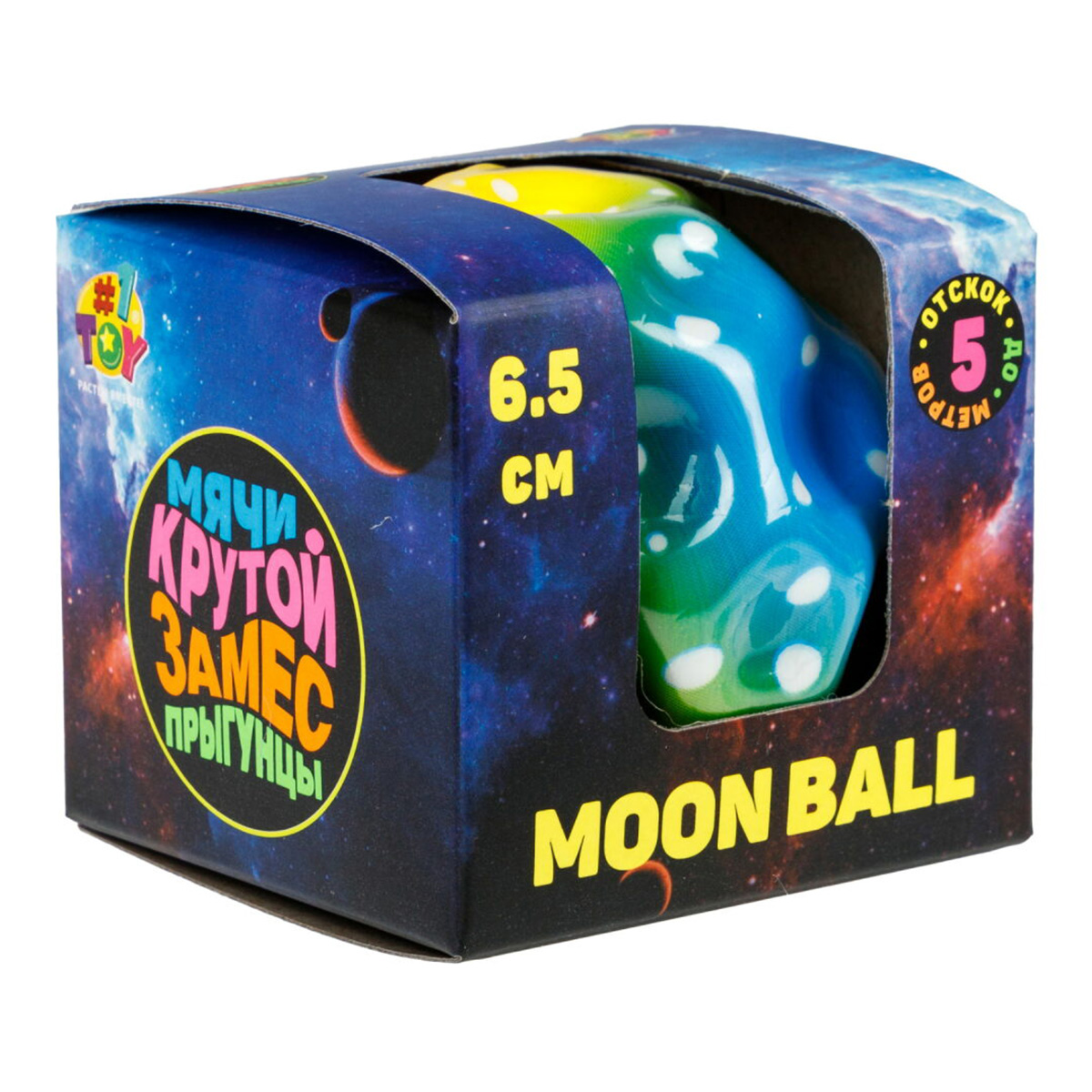 Мяч, который легко взлетает на высоту до 5 метров, дарит приятный звук при каждом отскоке и имеет поверхность с рельефом, напоминающим лунные кратеры, – всё это о "Moon Ball Крутой замес" от 1TOY!