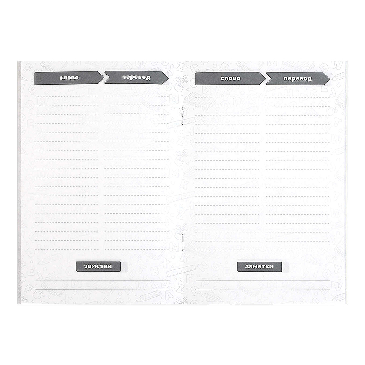Тетрадь для изучения иностранных слов формата А6, 32 л. обложка - мелованный картон 190 г/м?, вн.блок - белый офсет, 65 г/м, мягкий переплёт , глянцевая ламинация, закладка для проверки слов