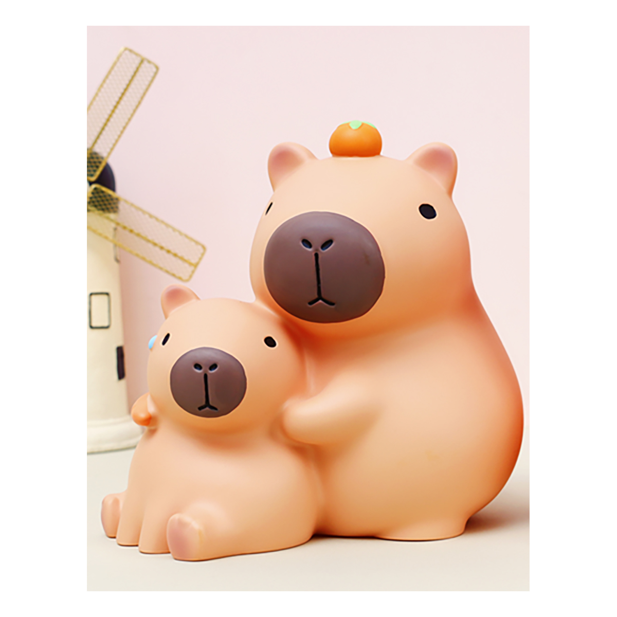 Эта очаровательная копилка в виде двух капибар — взрослой и детёныша — станет милым и функциональным аксессуаром в вашем доме! Дизайн передаёт трогательные моменты между родителями и их малышами, создавая атмосферу уюта и тепла.
