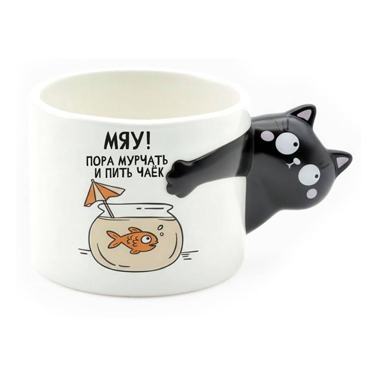 Посуда керамическая ILIKEGIFT Кружка керамическая Мяу! Пора мурчать и пить чаёк 9.6 х 10.3 х 13.6 см FC250161 Фото 1.