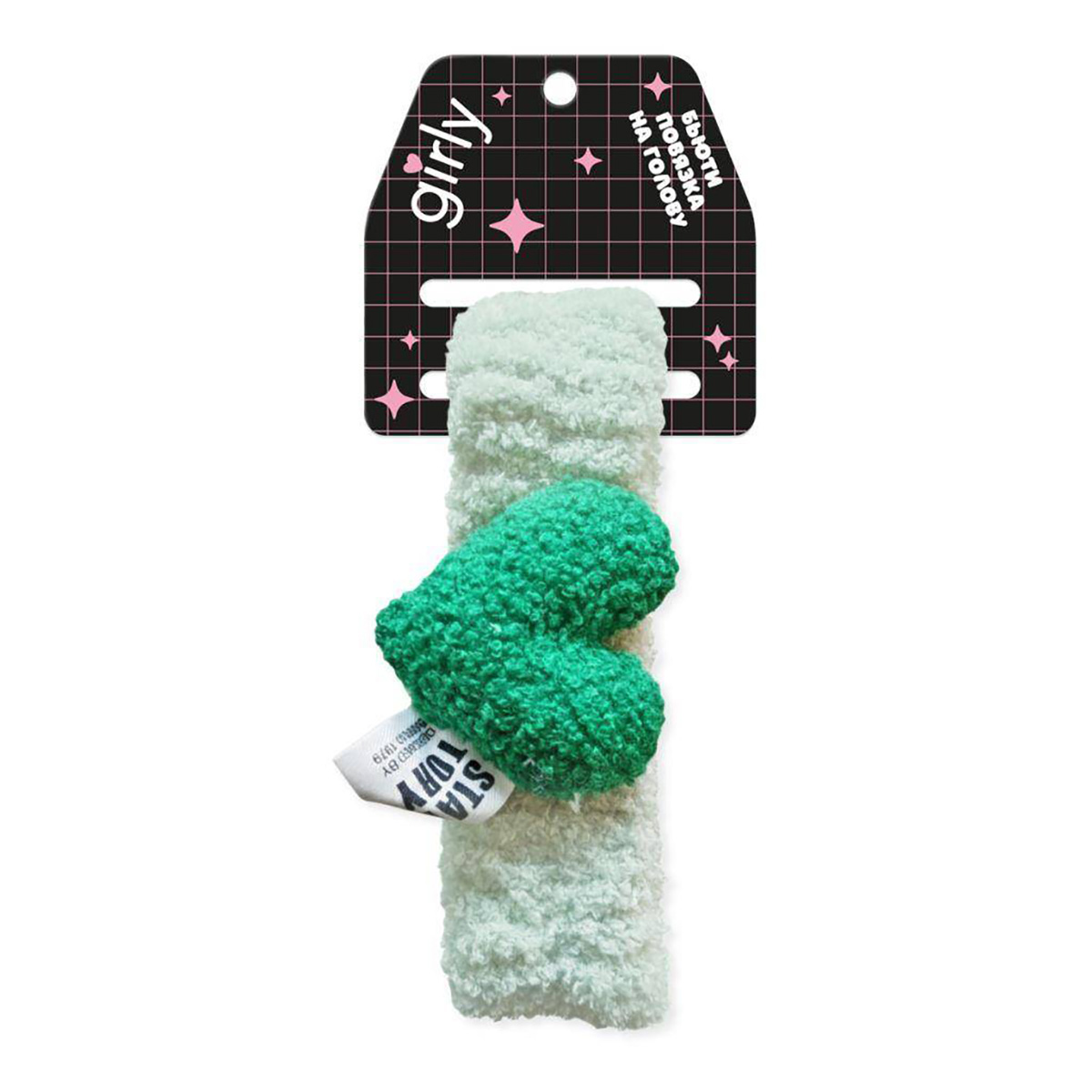 "GIRLY" Повязка на голову 180-001-01 Плюшевое сердечко, зеленая