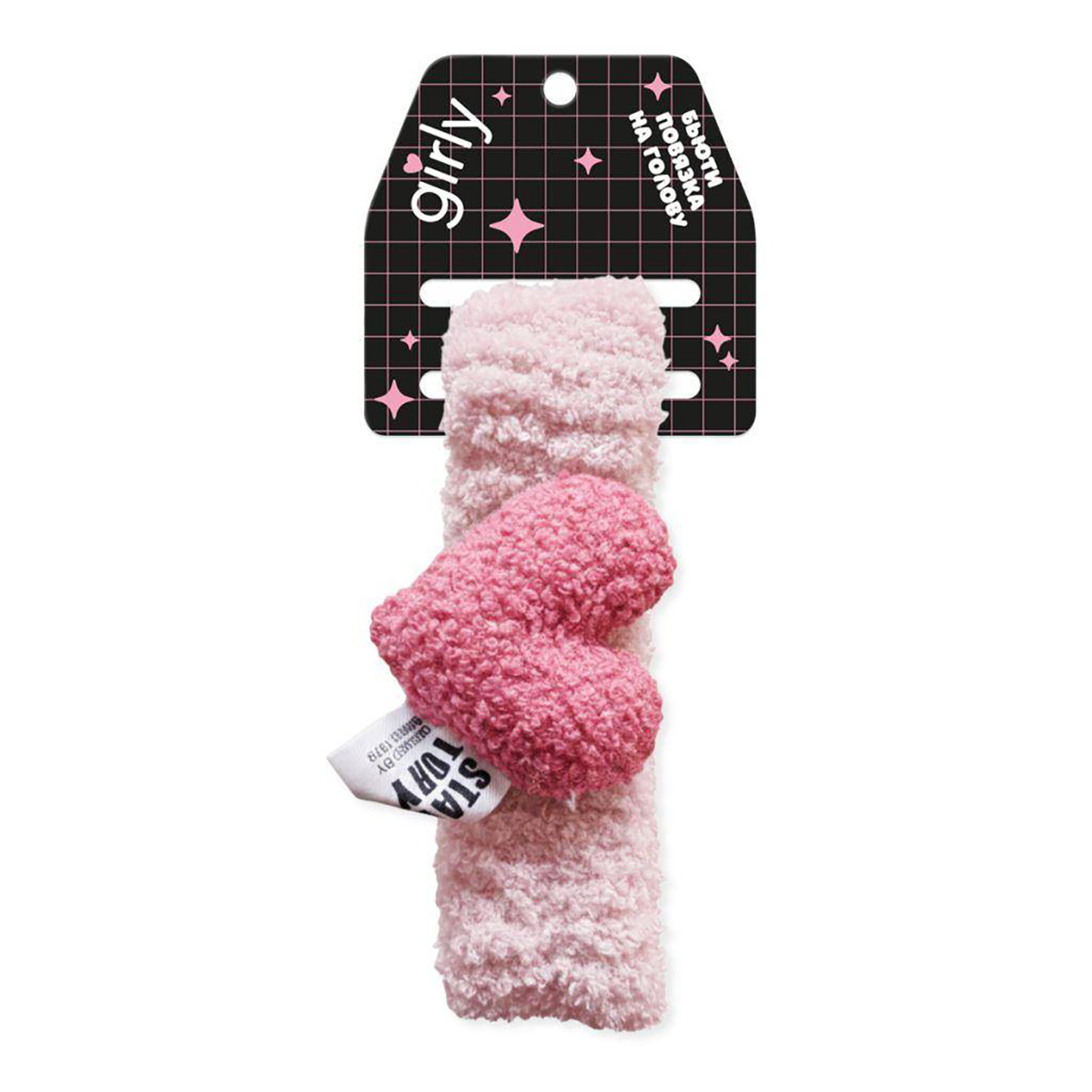"GIRLY" Повязка на голову 180-001-02 Плюшевое сердечко, розовая
