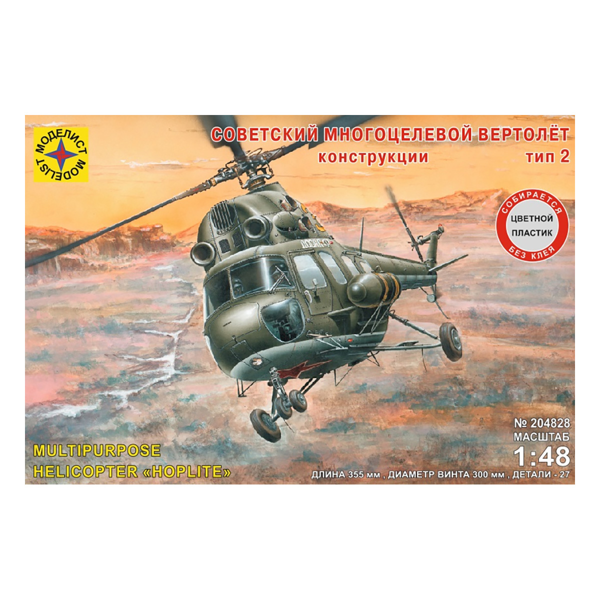 МОДЕЛИСТ 204828 М-2 — советский многоцелевой вертолёт, разработанный в ОКБ Михаила Леонтьевича Миля в начале 60-х годов ХХ века. Во второй половине 50-х годов в вооружённых силах и народном хозяйстве СССР широкое распространение получил небольшой и лёгкий вертолёт М-1. Он был оснащён поршневым двигателем, что уже не соответствовало требованиям того периода. Появились проекты усовершенствования вертолёта М-1, однако они не получили одобрения. Во время проектных работ у сотрудников ОКБ родилась идея использования на новом вертолёте силовой установки, которая состояла бы из двух газотурбинных двигателей. Это бы значительно повысило надёжность и безопасность во время полёта. Этот проект позднее стал известен как М-2. В сентябре 1962 года первый опытный экземпляр был представлен членам советского правительства и представителям Польской Народной Республики. После демонстрации было решено начать серийный выпуск в Польше.