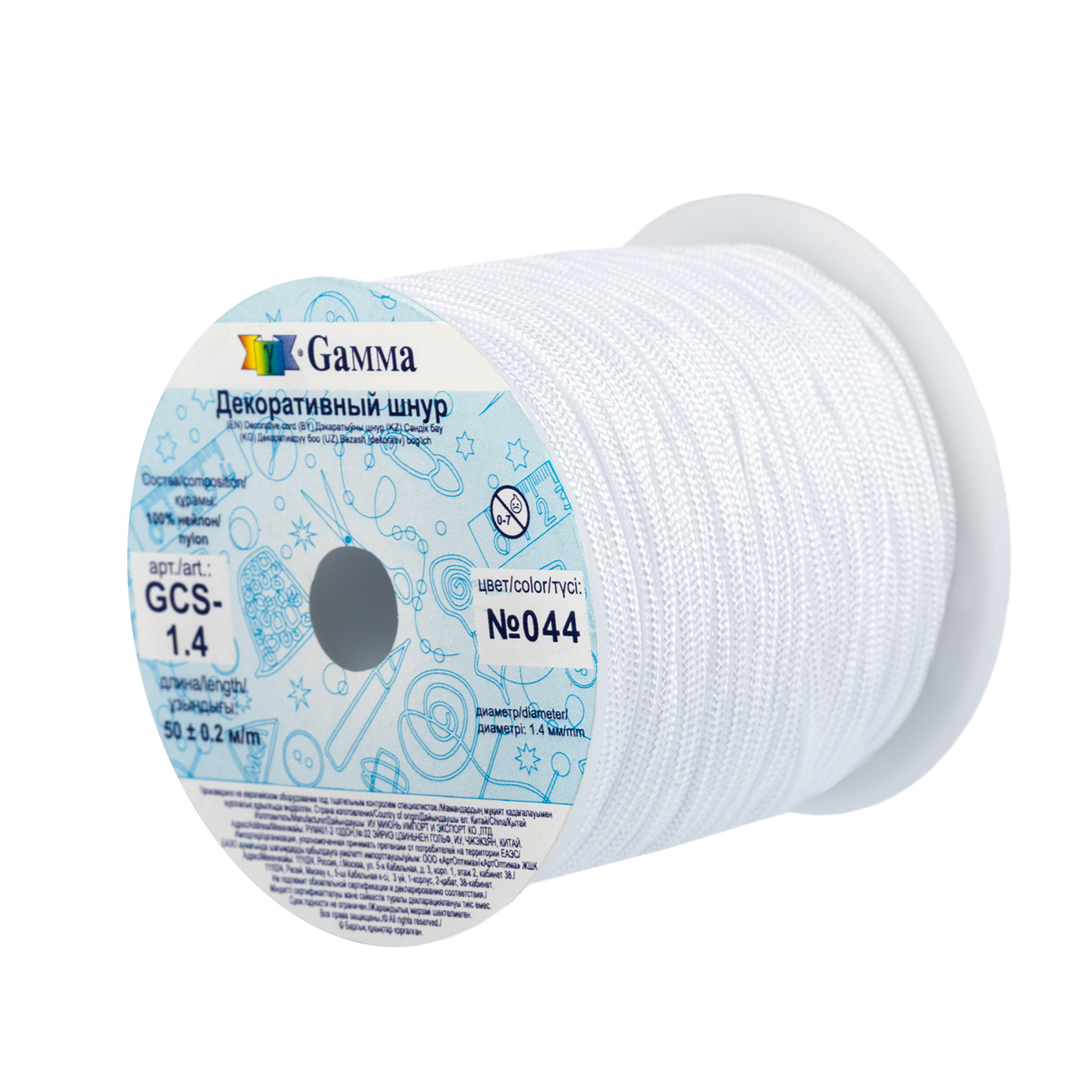Шнур "Gamma" 1.4 мм GCS-1.4 декоративный №044 белый