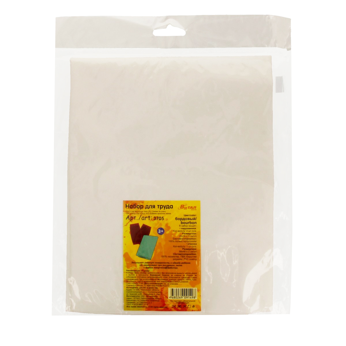 В набор входят: клеенка для творчества и нарукавники.