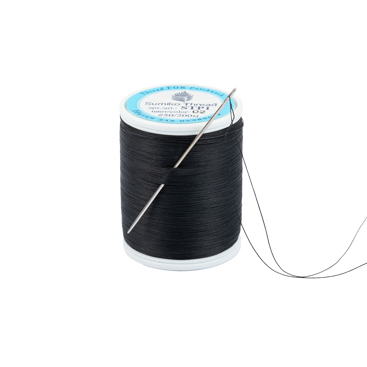 Нитки SumikoThread для пэчворка STP1 50 100% хлопок 200 м 219 я №02 черный Фото 4.