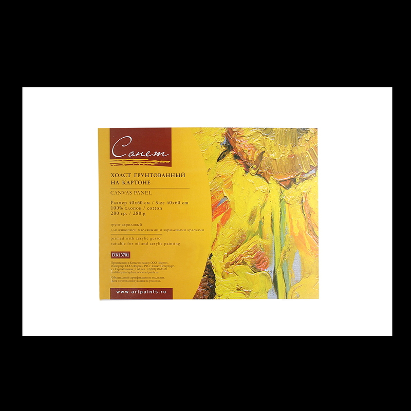 Холст грунтованный на картоне Сонет 100% хлопок 40 х 60 см 280 г/кв.м DK13701-40x60 мелкозернистый Фото 1.