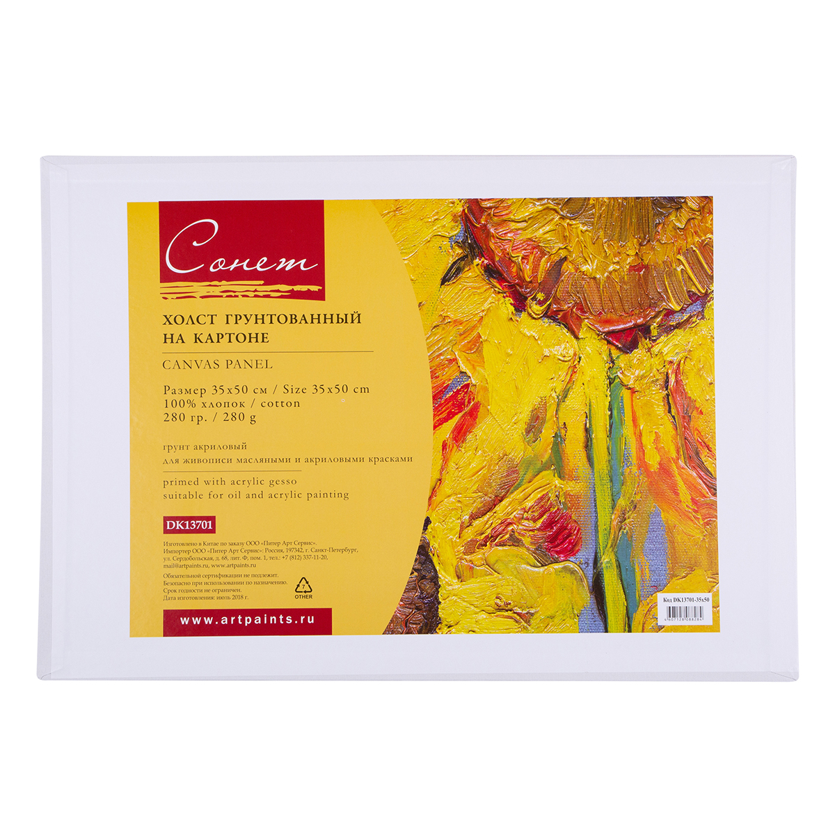 Холст грунтованный на картоне Сонет 100% хлопок 35 х 50 см 280 г/кв.м DK13701-35x50 мелкозернистый Фото 1.