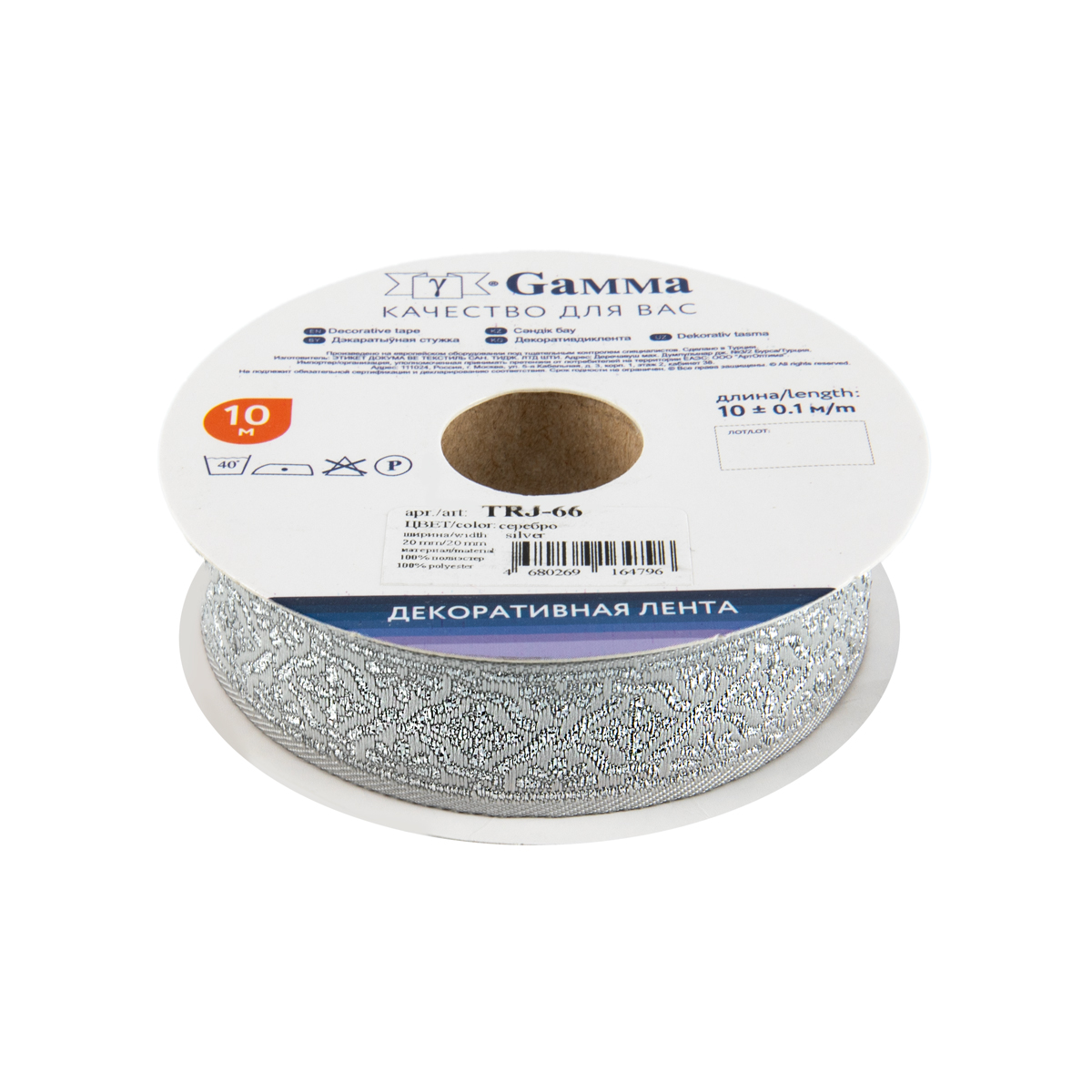 Лента жаккардовая 20 мм "Gamma" TRJ-66 металл. отделочная(галун православный) серебро