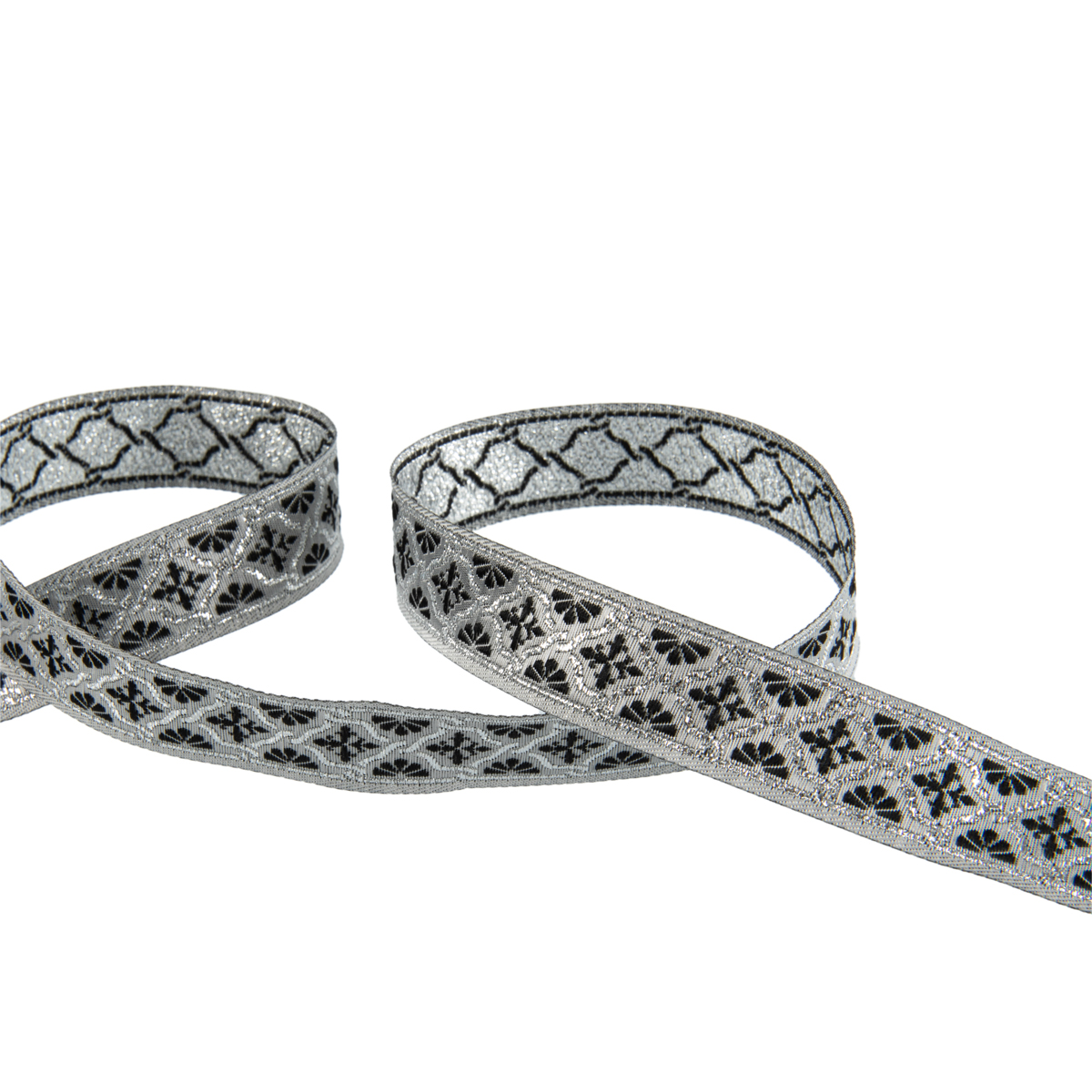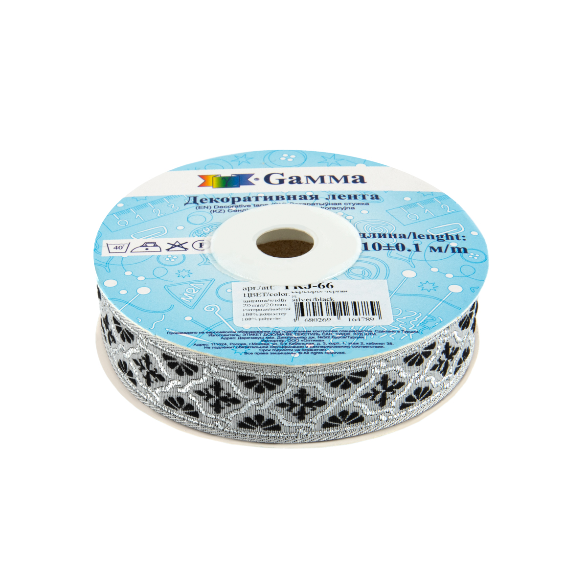 Лента жаккардовая 20 мм "Gamma" TRJ-66 металл. отделочная(галун православный) серебро/черный