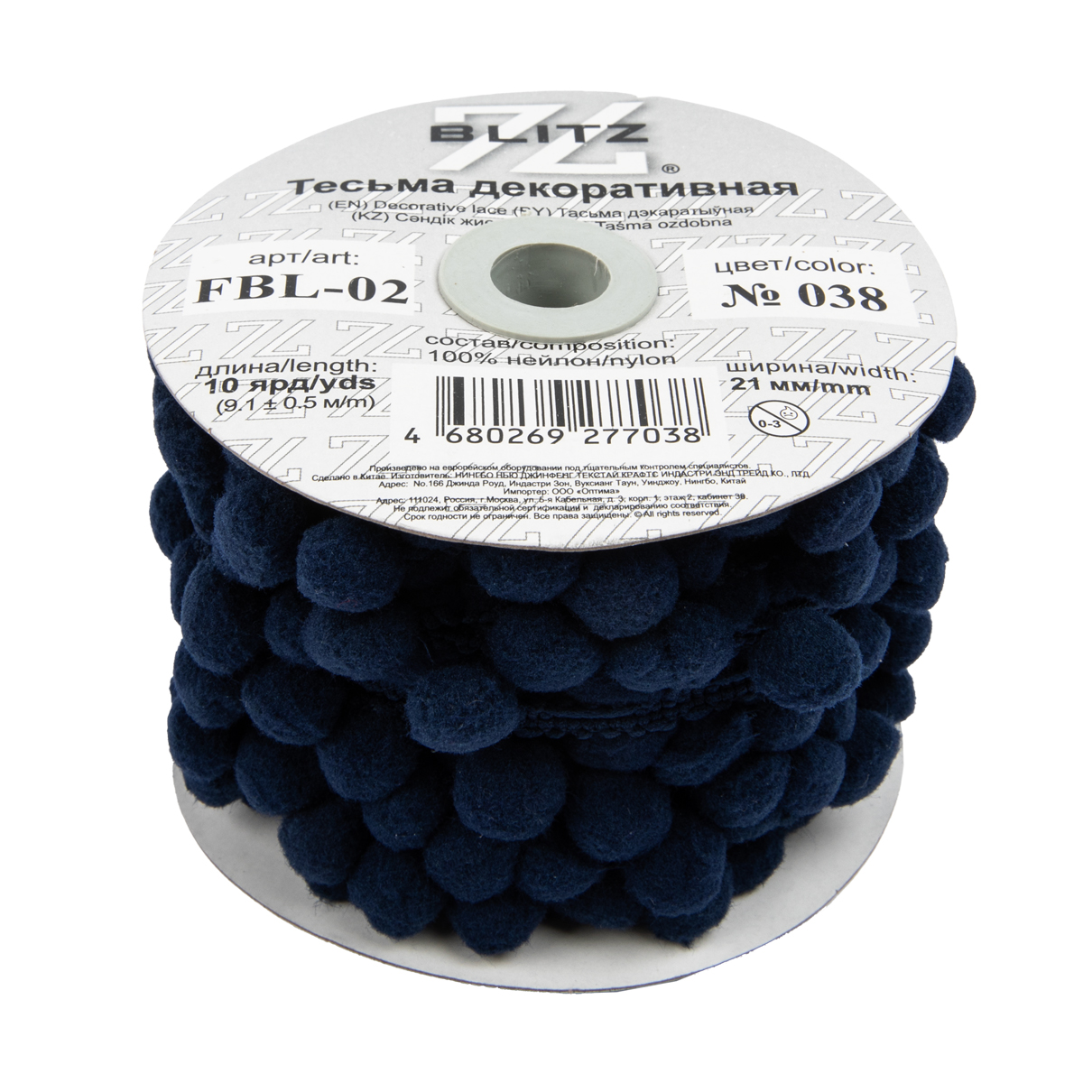 "BLITZ" тесьма декоративная FBL-02 21 мм №038 т.синий