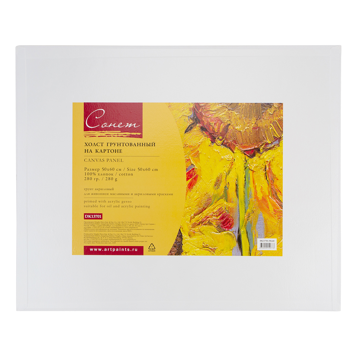 Холст грунтованный на картоне "Сонет" 100% хлопок 50 х 60 см 280 г/кв.м DK13701-50x60 мелкозернистый