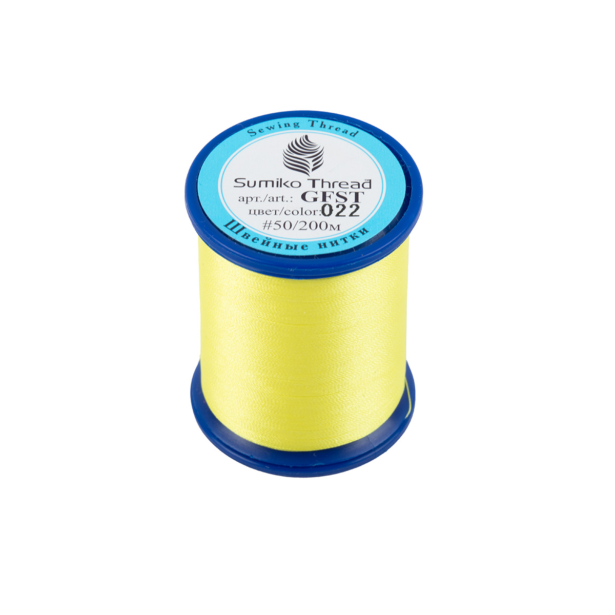 Швейные нитки (полиэстер) GFST 50 "SumikoThread" 200 м 219 я №022 яр.желтый