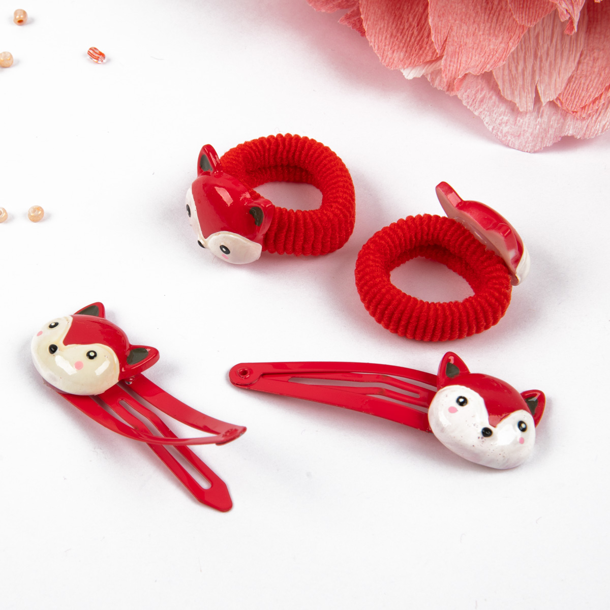 Набор аксессуаров для волос - 2 мягкие резиночки для волос и 2 заколки клик-клак - в одной цветовой гамме. Они идеально подходят для тонких косичек и хвостиков, помогут в создании нежных образов для маленькой модницы.