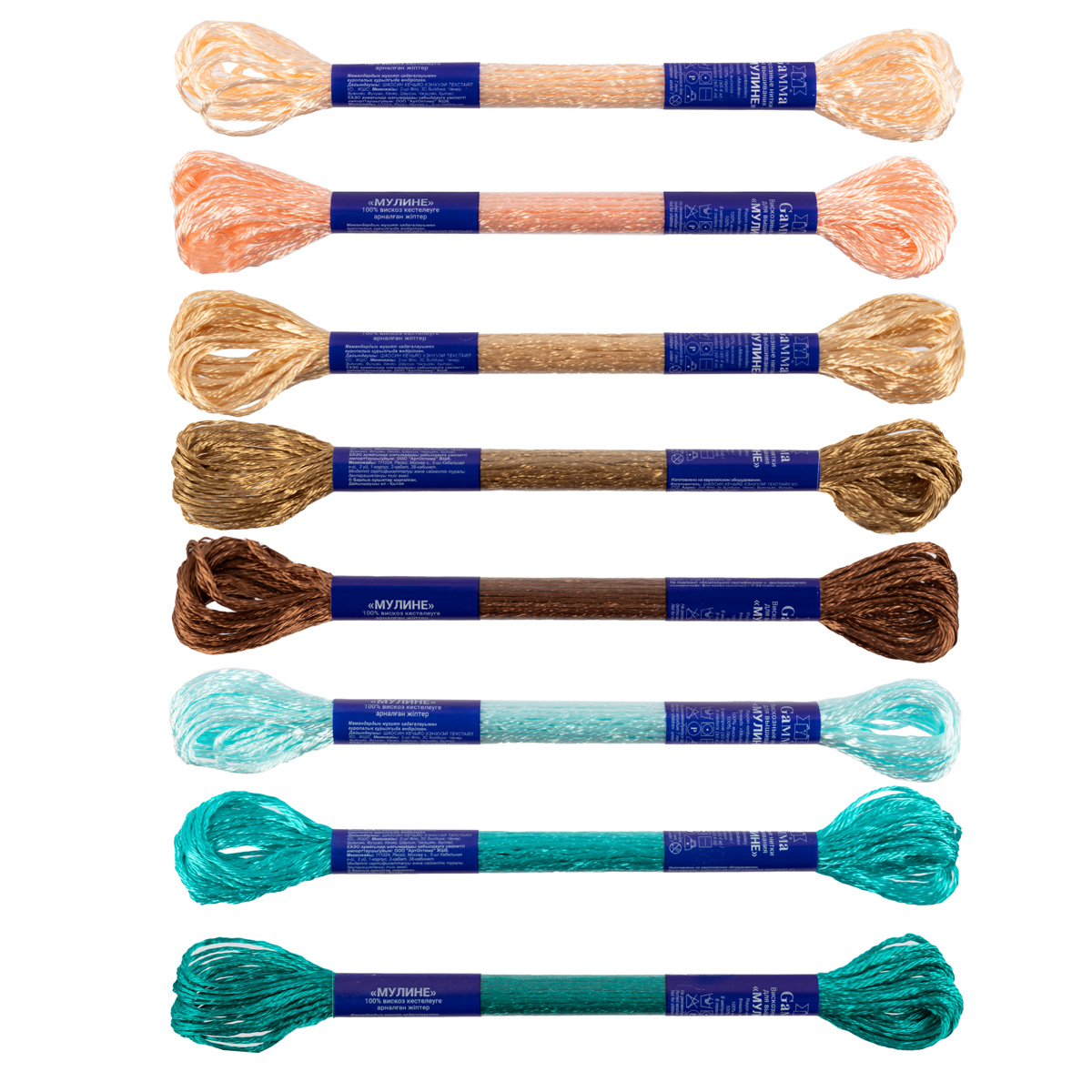 В набор вискозного мулине VM-08 входит 8 мотков по 8 м, разной цветовой палитры. Вы можете подобрать тот набор, который подойдет именно для вашей вышивки.