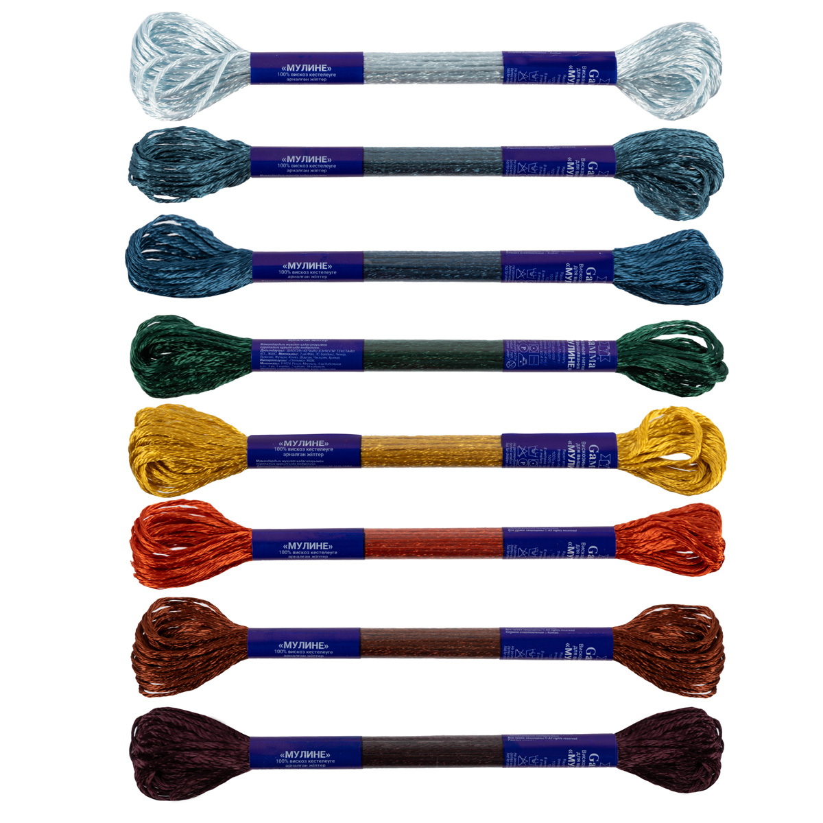 В набор вискозного мулине VM-08 входит 8 мотков по 8 м, разной цветовой палитры.