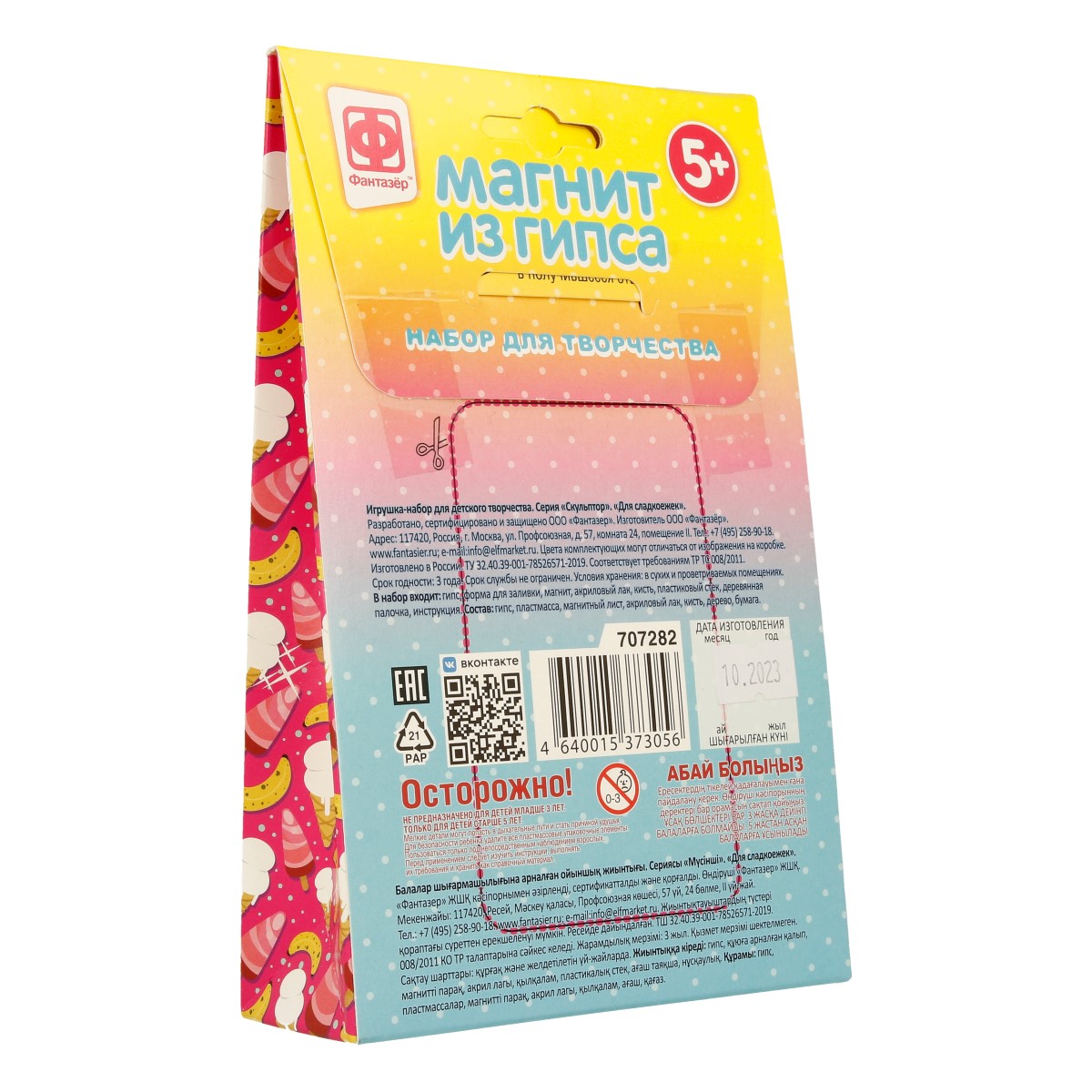 Набор для отливки магнита из гипса. В наборе: гипс, форма для заливки, магнит, акриловый лак, кисть, пластиковый стек. Состав: гипс, пластмасса, магнитный лист, акриловый лак, кисть. Для детей от 5-ти лет.