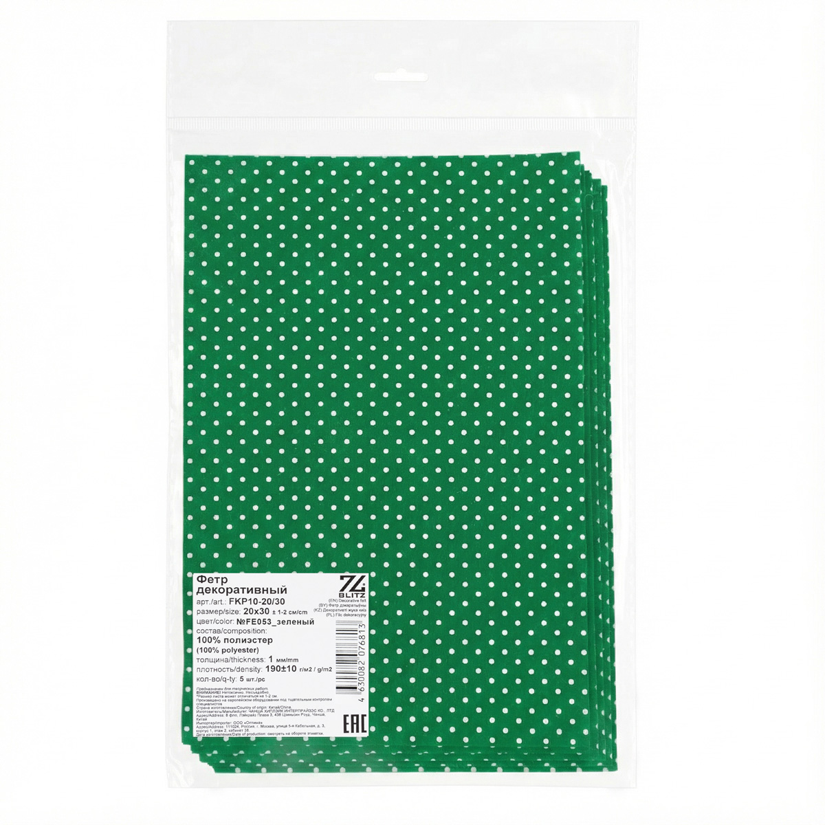 Фетр декоративный с рисунком в горошек. Мягкий. Толщина фетра - 1 мм Состав: 100% полиэстер Фетр используется для создания различных декоративных элементов: бус, браслетов и заколок для волос, декора для мебели, ковриков, диванных подушек, кашпо для цветов, подставок под