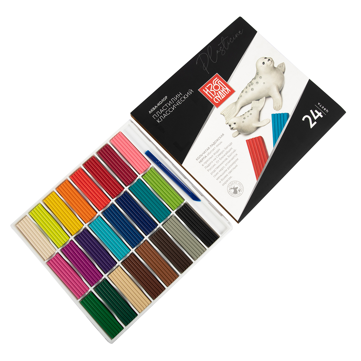 "Аква-колор" "Изостудия" Пластилин классический IZO-MC24 480 г ( в картонной упаковке ) 24 цв. .
