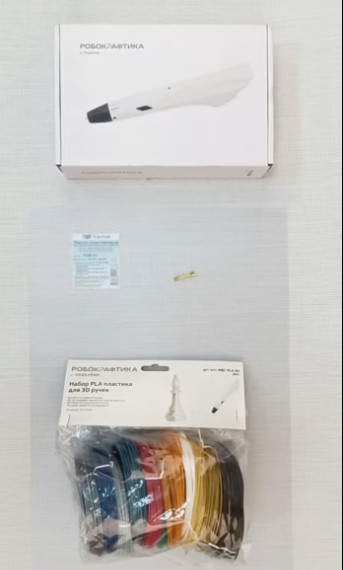 В комплекте: 3D-ручка, адаптер, USB-кабель, 3 мотка филамента PLA [по 3 м], руководство пользователя, пластиковая мини-отвертка [для регулировки температуры и снятия крышки регулятора].